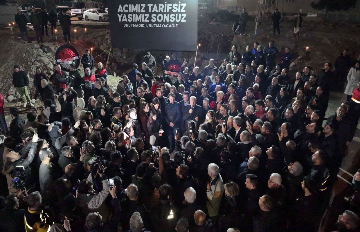 Konuşmaların ardından hayatını kaybedenlerin anısına, Alpargün apartmanının enkazına karanfiller bırakıldı.