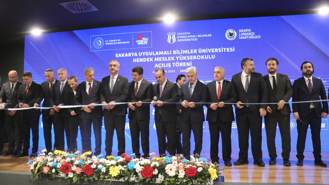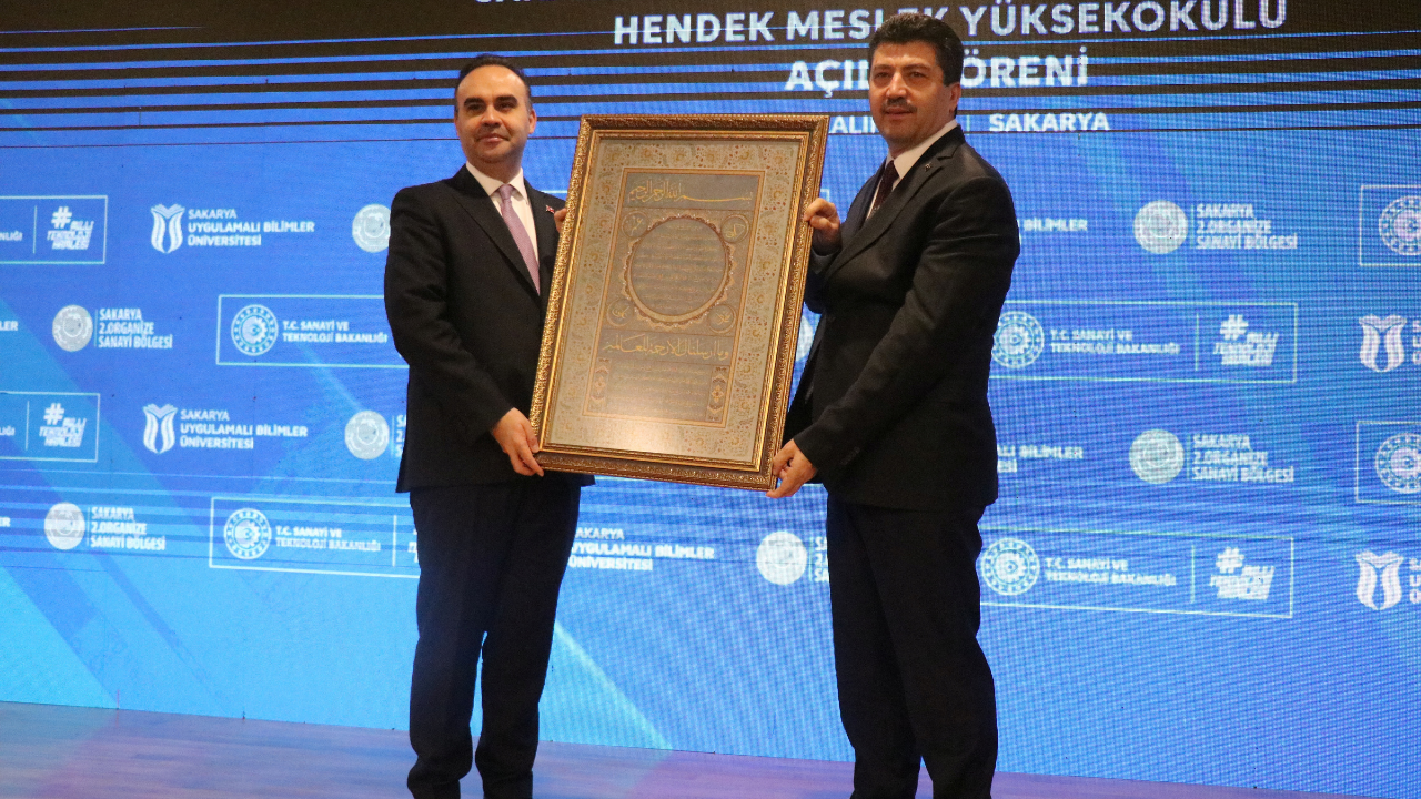 Sakarya Uygulamalı Bilimler Üniversitesi Hendek Meslek Yüksekokulu Açılış Töreni, Sanayi ve Teknoloji Bakanı Mehmet Fatih Kacır’ın katılımıyla gerçekleştirildi. Hendek ilçesi Organize Sanayi Bölgesinde inşa edilen yüksekokulun açılışında konuşan Bakan Kacır, ‘Sanayisiyle, ticaretiyle ülkemizin lokomotif şehirleri arasında yer alan Sakarya’mızın üretim gücüne güç katacak yeni eğitim yuvamızın şehrimize, ülkemize hayırlı, uğurlu olmasını temenni ediyorum. Geleceğimizi emanet edeceğimiz gençlerimize geçmişin fotoğrafını sunmak; bugünün Türkiye’sinin inşa sürecini doğru şekilde anlatmak, onları yarınlara daha güçlü hazırlayacaktır. 23 yıl önce üretimi montaj sanayinin ötesine geçemeyen, kabiliyetleri bastırılan, gençlerinin girişimlerini ve hayallerini askıda bırakan anlayışın hâkim olduğu bir Türkiye tablosu vardı. Vakti zamanında Vecihi Hürkuş, Nuri Demirağ, Şakir Zümre gibi nice öncü ismin girişimlerinin akamete uğratılması, ülkemizden çıkacak her kıvılcımın ateşini henüz yanmadan söndürdü. Türkiye’ye yıllar yılı hem vakit kaybettiren hem de milletimizin özgüvenini bastıran ‘biz yapamayız’ anlayışı, 23 yıl öncesine kadar sürdürüldü. Ancak ayağımıza vurulan bu prangalardan 23 yıl önce Cumhurbaşkanımızın liderliğinde kurtulduk. Özgüvenini tekrar kazanan, küllerinden yeniden doğan bu milletin hayallerini birer birer gerçeğe dönüştürdük. Güçlü, rekabetçi ve sürdürülebilir sanayi altyapısıyla, Ar-Ge ve inovasyon yatırımlarıyla, nitelikli insan kaynağıyla ülkemizi bölgesinde ve dünyada söz sahibi konuma taşıdık. Üretimde ve teknoloji geliştirmede attığımız uzun vadeli adımların neticesinde imalat sanayi katma değerimizi 41 milyar dolardan 241 milyar dolara yükselttik. Askeri insansız hava aracı üretiminde dünya lideri olduk. Ticari araç, güneş paneli, beyaz eşya gibi pek çok üründe Avrupa’nın önde gelen üreticisi konumunda yer alan bir Türk sanayii inşa ettik. Yıllık ürün ihracatımız, imalat sanayimizin öncülüğünde 36 milyar dolardan 270 milyar dolara çıktı. Türkiye bugün, Çin’den sonra Orta Avrupa’ya kadar uzanan kuşakta ürettiği ürün ve ihracat yaptığı pazar çeşitliliği açısından en rekabetçi ülkedir’ dedi.