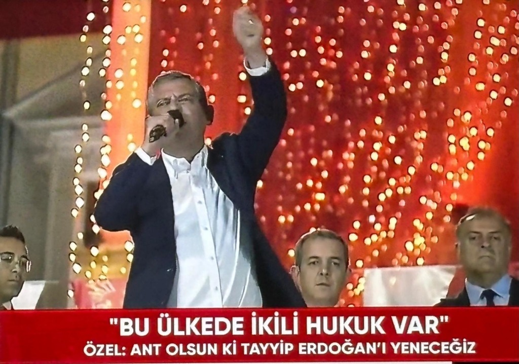Mitingdeki kalabalığı vurgulayan CHP lideri, “Burada toplanan yüz binler gösteriyor ki biz güçlüyüz, biz masumuz. Ahlaki üstünlük bizdedir. Çoğunluk enerjisi bizdedir. Buradan Erdoğan’a sesleniyorum. Sesimin gitmediği en ucunda durup duymasa da burada olmanın gerekliliğini bilenlerin inancına yenileceksin! İnan Güney’in evlatlarının masumiyetine yenileceksin! İçeride boşuna tutulan arkadaşlarımızın annelerinin, eşlerinin, çocuklarının gözyaşlarında boğulacaksın” ifadelerini kullandı.