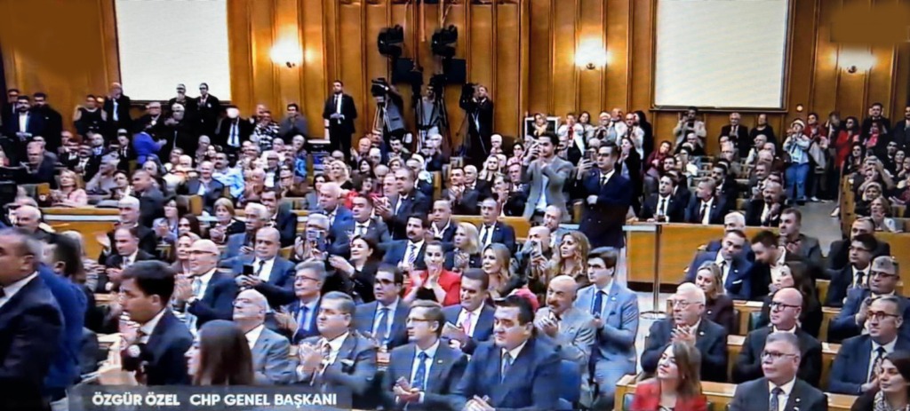 CHP Rozetini takan ve kendisine eşlik eden eşi ve Sakarya CHP Milletvekili Ayça Taşkent ve Sakarya İl Başkanı Akın Curoglu ile birlikte “Sakarya’dan dört milletvekili beklediğini söyleyen Özgür Özel, alkışlar eşliğinde Ümit Dikbayır’ın konuşmasını dinledi ve alkışladı.